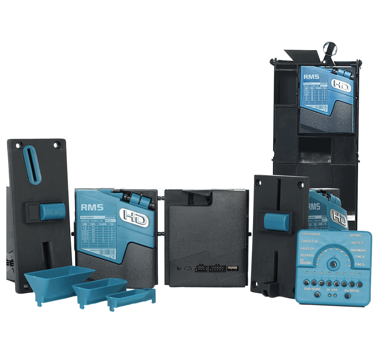 A versatile coin mechanism, which perfectly integrates with the machine onto which it is installed. Creating the ideal coin mechanism with an unlimited budget is rather simple; the real challenge is obtaining the highest performance keeping costs as low as possible. RM5 HD is a winner under all points of view, combining considerable performance and a really competitive price.